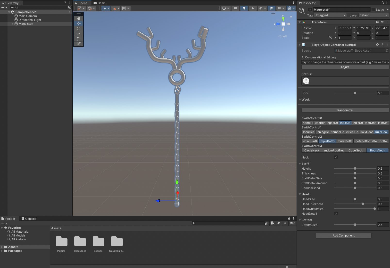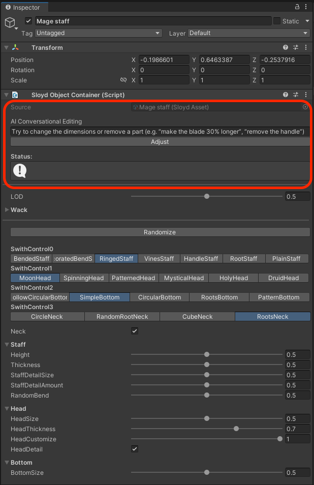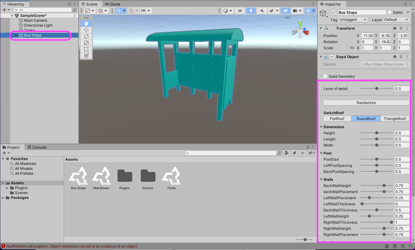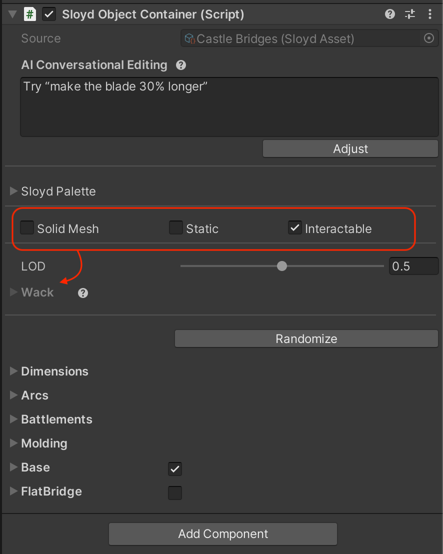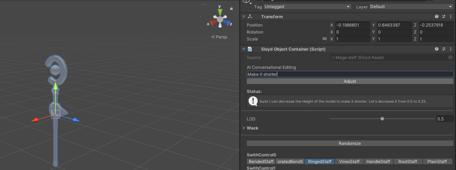 With the Sloyd SDK/Plugin you can spawn generators (configurable 3D objects) and edit them.