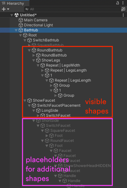 By default, a Sloyd object is not static. A none static Sloyd object contains, in addition to the visible meshes, placeholders in the hierarchy for additional shapes and code instructions on how to construct those shapes.